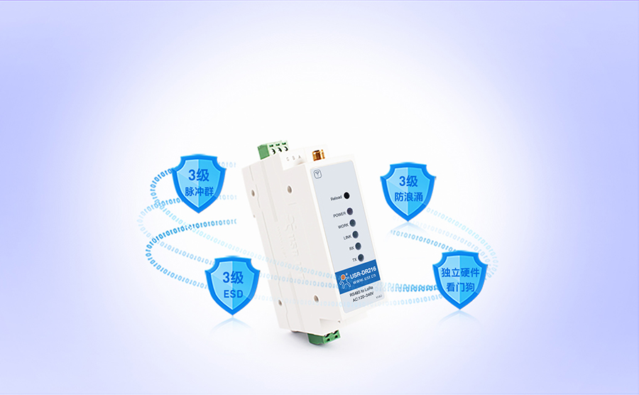 ESD靜電3級防護、浪涌防護3級、脈沖群防護3級、獨立硬件看門狗、高低溫-40℃~+85℃