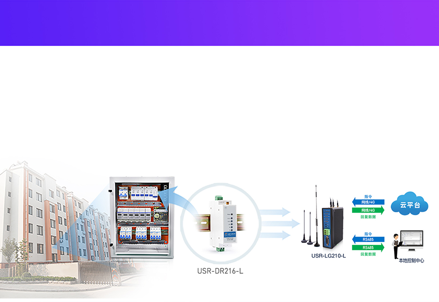 USR-DR216-L設備進行無線LoRa數據傳輸,可進行無線抄表、無線控制樓內設備等,