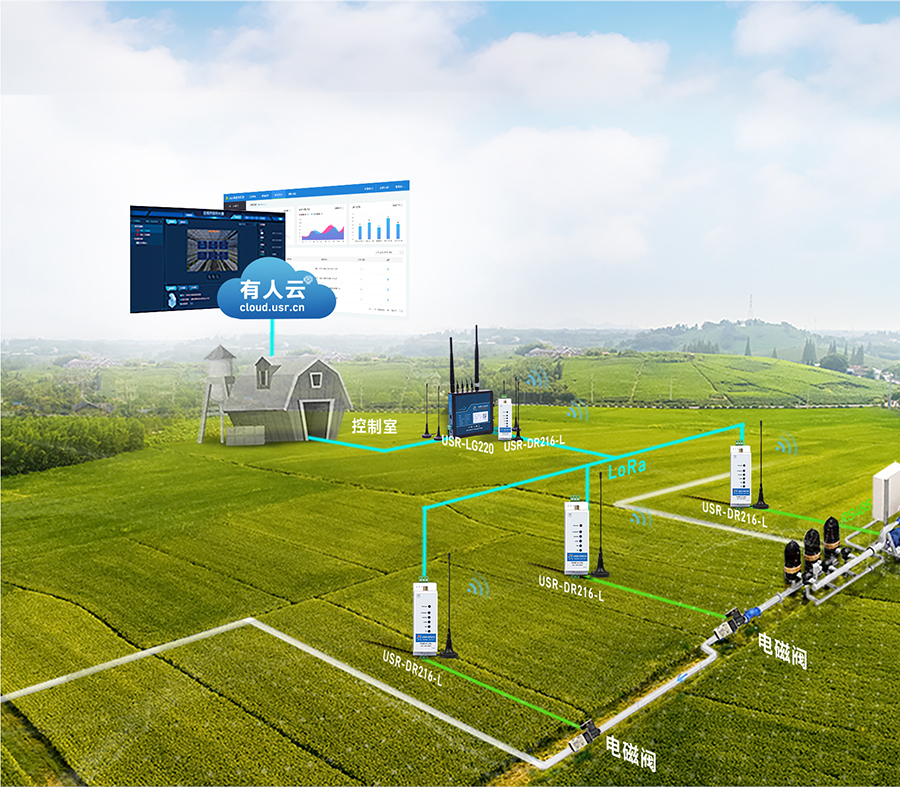 農田類傳感器接入USR-DR216-L,通過設置與LoRa網關無線數據傳輸,