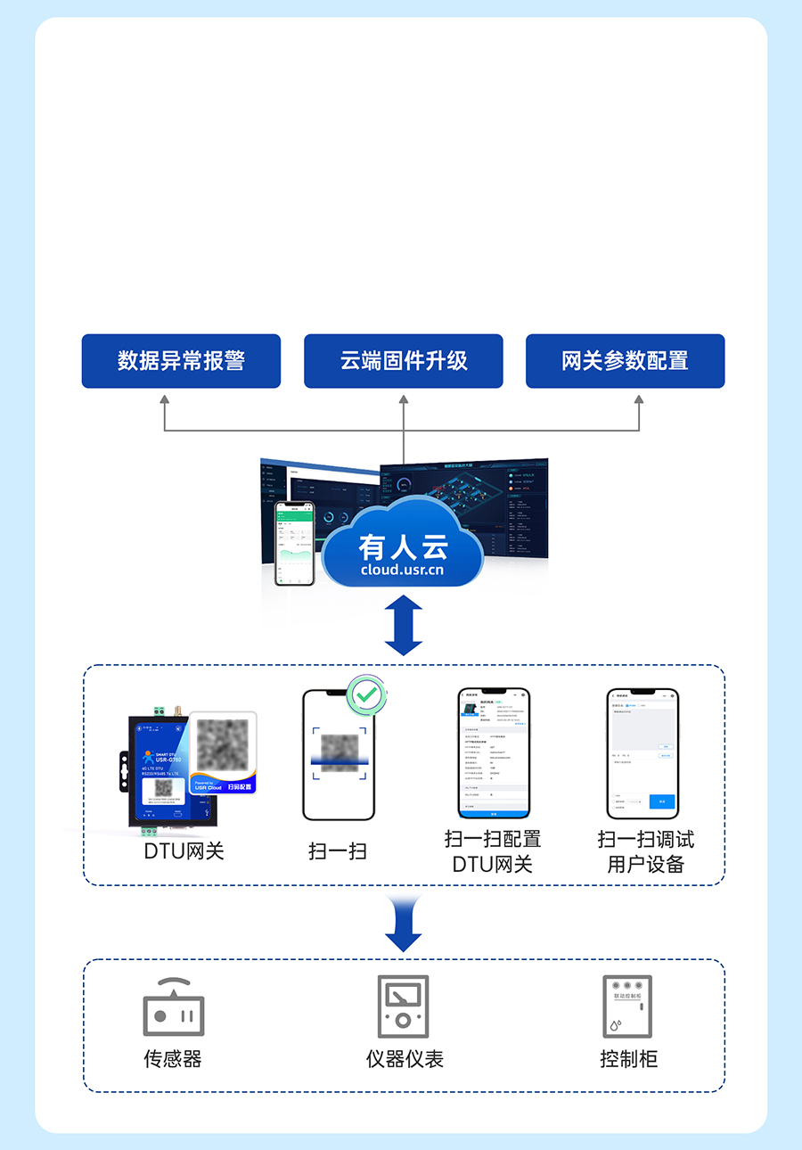 終端設備連接DTU網關,掃描網關正面上云碼,