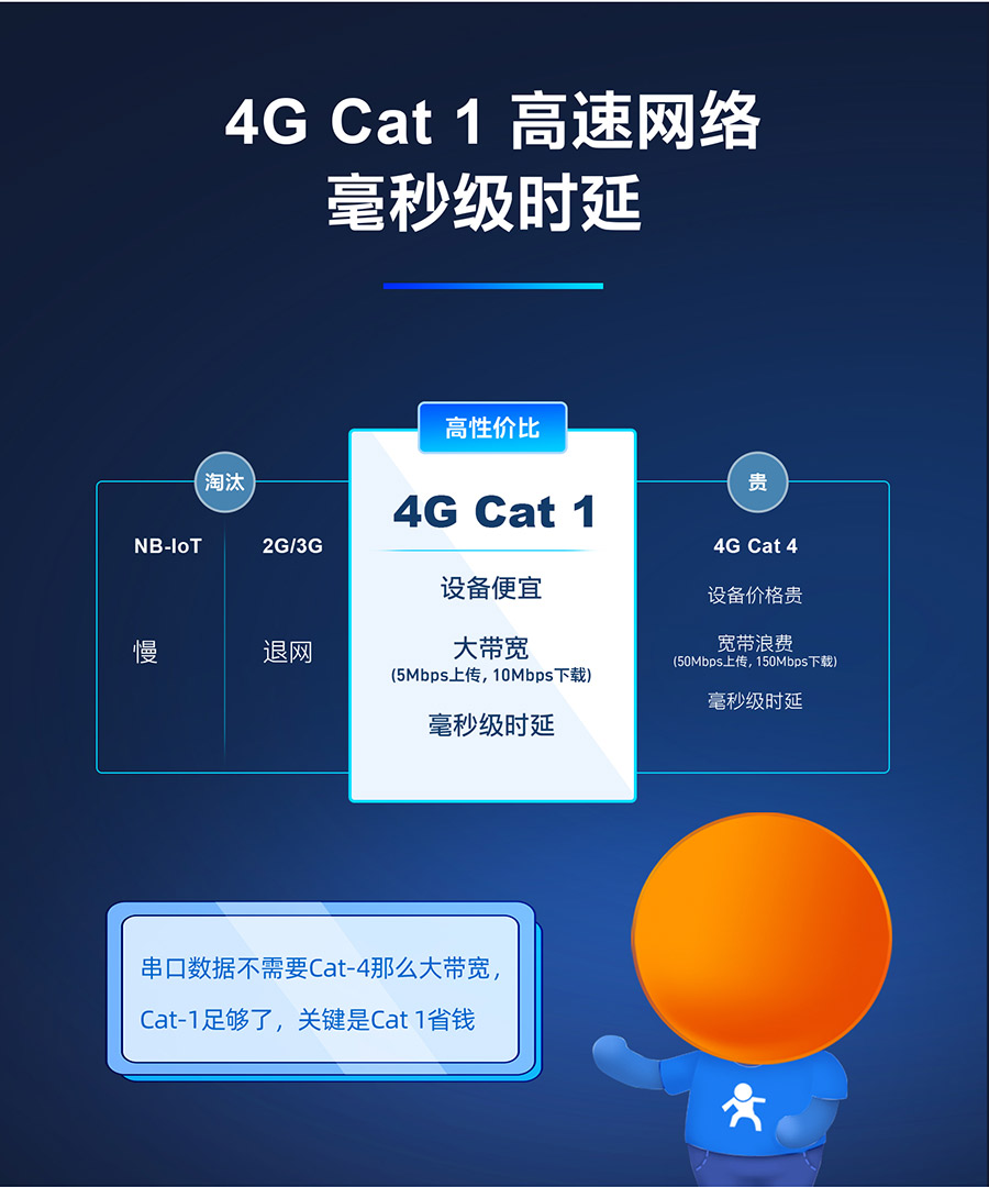 3GPP Release 13 CAT1下行7.5 Mbps,上行1 Mbps