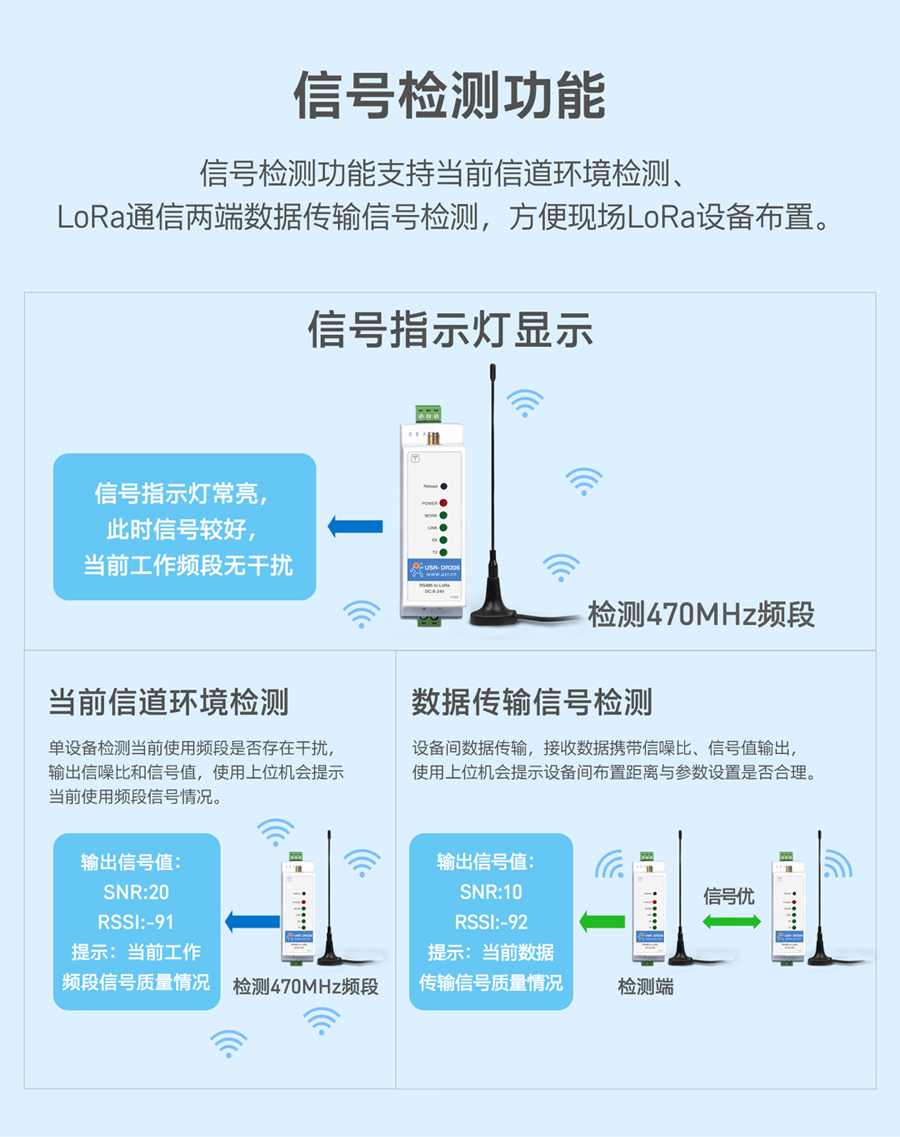 指示燈顯示信號強度、使用信道干擾檢測、數據通信過程檢測