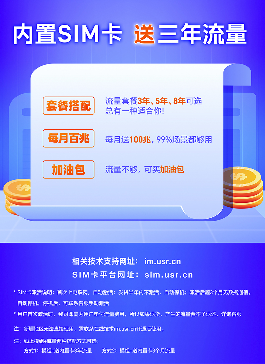 默認內置貼片卡或使用自帶SIM卡卡槽