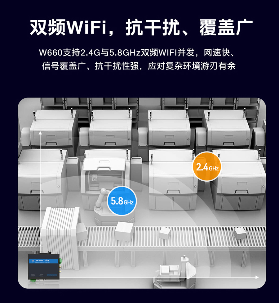 支持 5.8G 快速漫游,可達(dá)到 100ms 漫游延時(shí)