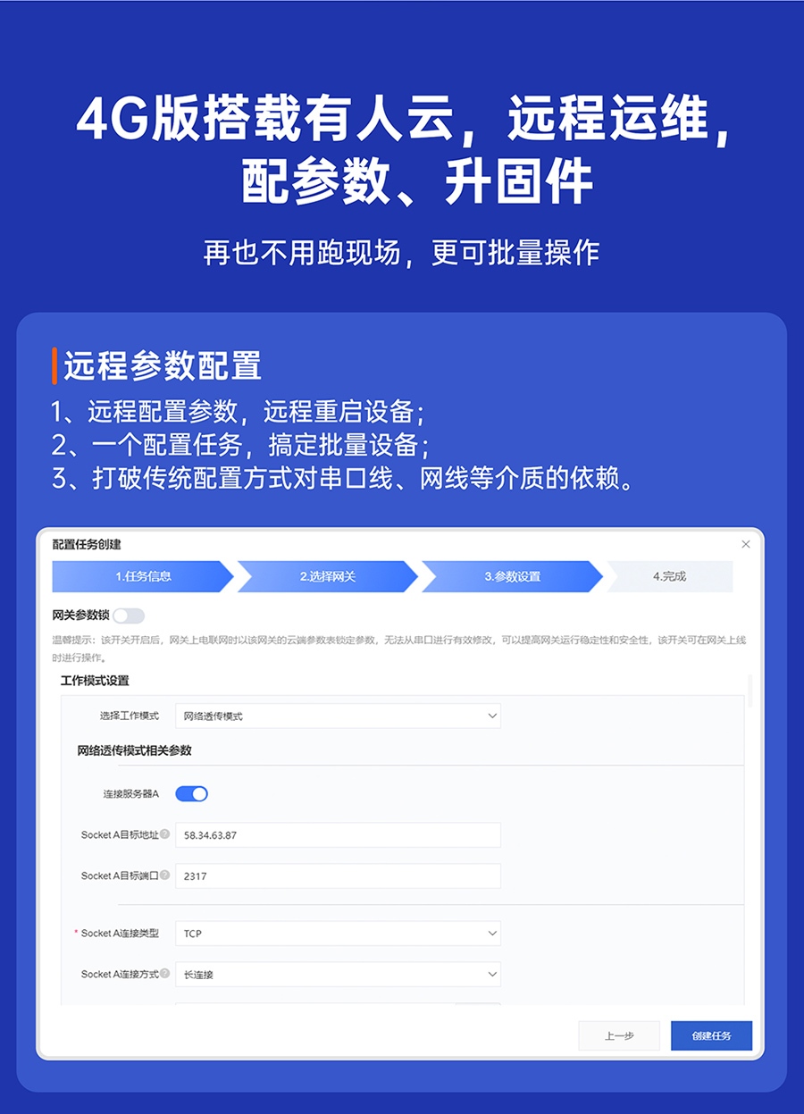 網絡透傳(TCP、UDP Client)、HTTPD模式 、MQTT模式