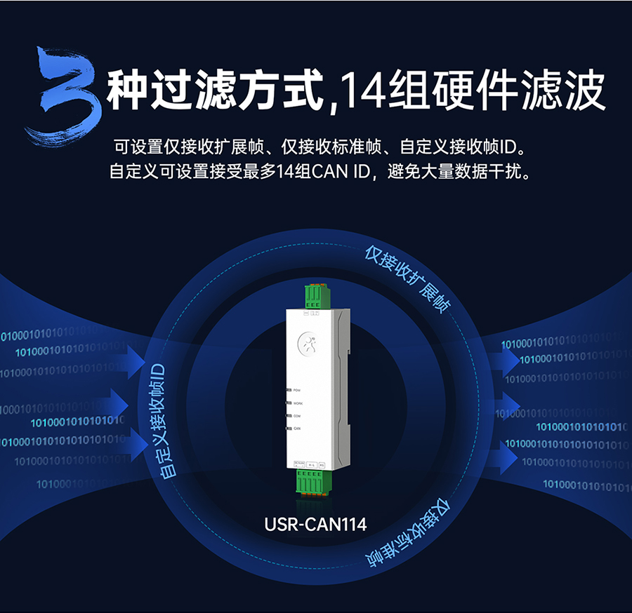 支持僅接收標(biāo)準(zhǔn)幀、僅接收擴(kuò)展幀、自定義幀ID過(guò)濾