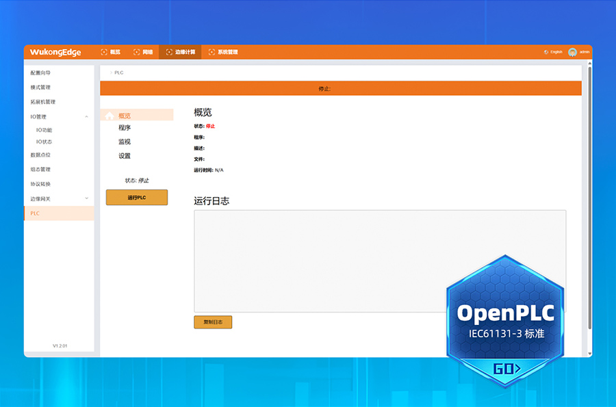 WukongEdge 邊緣+組態+PLC,一站式綜合應用服務 邊緣計算,組態管理,PLC編程,網絡管理,協議集成,網頁配置。