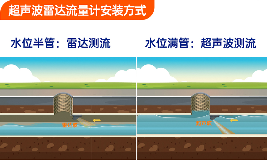 支持組播優化 超聲雷達流量計,該設備是針對管網環境設計的,不適用河道、水庫等空曠開放的場景。如有其它需求,可聯系我司銷售進行咨詢。 超聲波雷達流量計安裝方式: