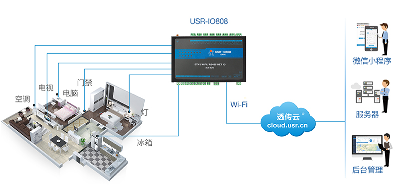 此處采用網絡IO控制器對酒店設施的開關進行遠程智能控制,加速酒店信息化建設,提高智能管理水平,幫助酒店運營商節省更多成本。