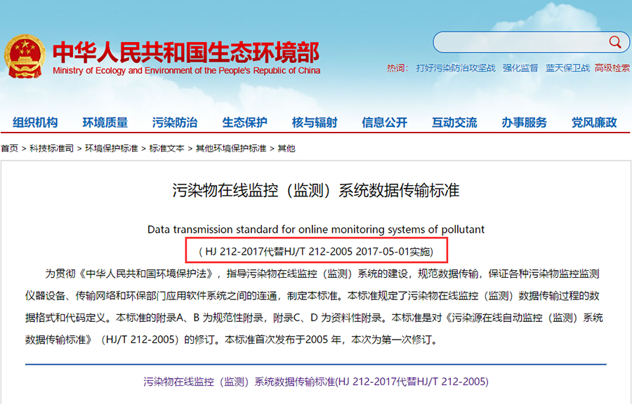 為應對上述狀況,國家生態環境部科技標準司出臺《污染物在線監控(監測)系統數據傳輸標準》,從監管層面對環境監控過程的傳輸標準進行統一,對標準建立和傳輸格式進行了明確規定。