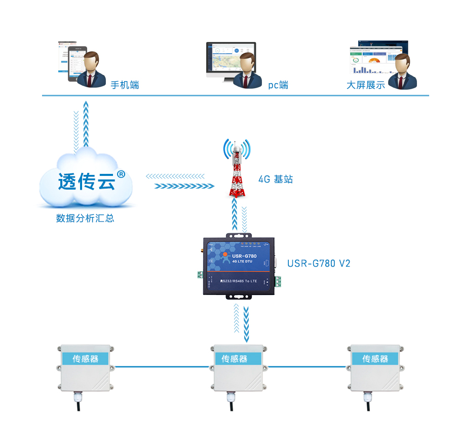 網(wǎng)絡透傳:即透明傳輸,G780 V2接收什么就發(fā)送什么,快速連接串口設備和網(wǎng)絡服務器,將串口數(shù)據(jù)快速轉成4G傳輸。