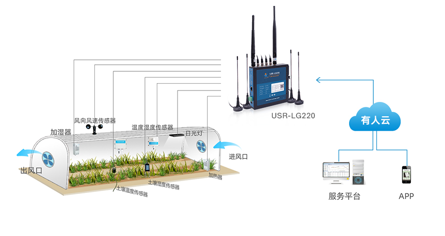 有人物聯網針對農業大棚集約、高產、高效、生態、安全的發展需求,基于多年在物聯網領域積累的聯網經驗,提出了土壤和環境參數在線采集、智能組網、無線傳輸、數據處理、預警信息發布、決策支持、自動控制等功能于一體的農業大棚物聯網解決方案。種植戶可以通過手機、PDA、計算機等信息終端,實時掌握種植環境信息,及時獲取異常報警信息及環境預警信息,并可以根據環境監測結果實時調整控制設備,實現農業大棚的科學種植與管理,最終實現節能降耗、綠色環保、增產增收的目標。